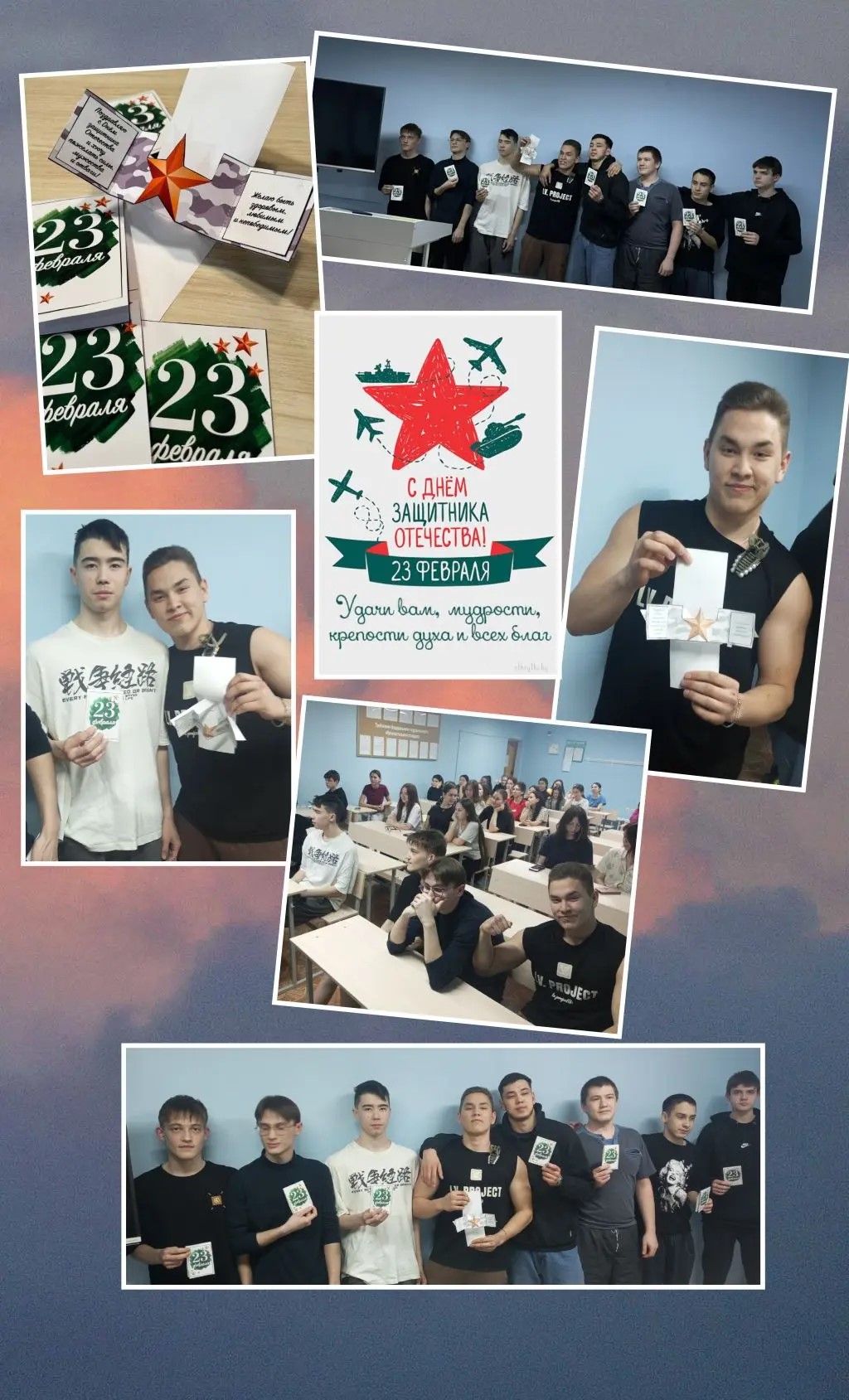 Сегодня состоялась встреча студентов с участником специальной военной операции с позывным «Внук» и председателем Совета родителей Р.Ш. Харрасовым, приуроченная к Году защитника Отечества и 80-летию Великой Победы.