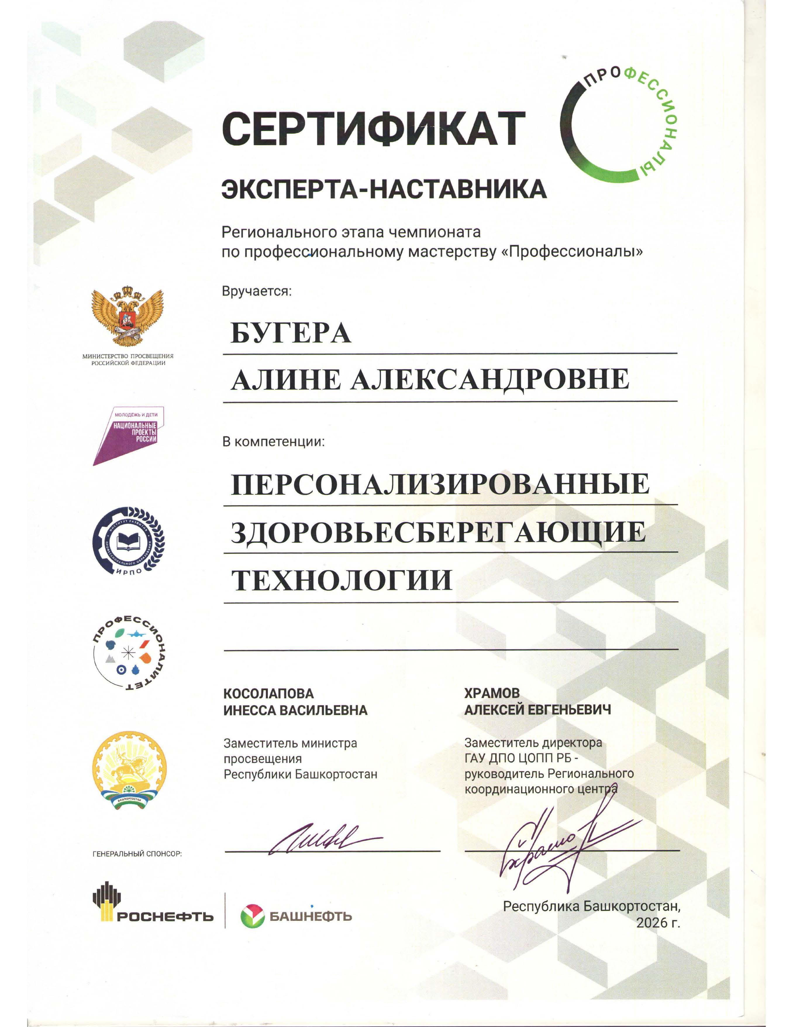 · «Персонализированные здоровьесберегающие технологии» - Вахитова Гульназ под руководством Бугера А.А., эксперт-наставник.