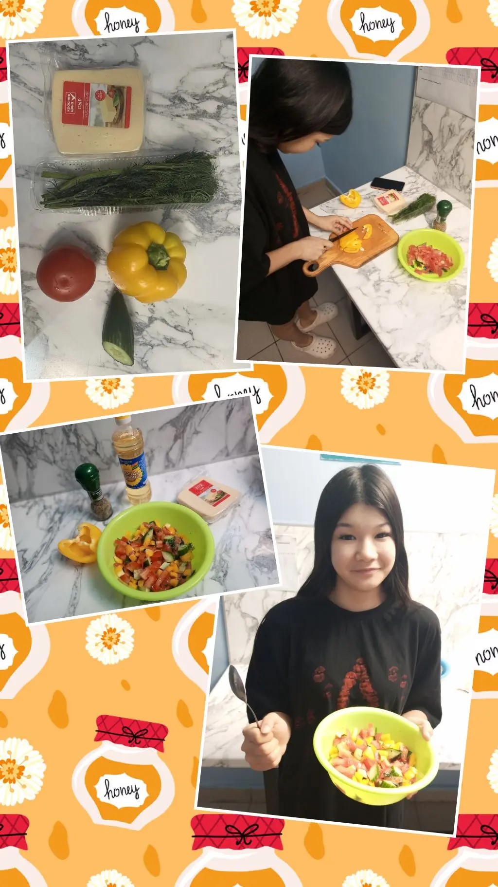 Например, Рахматуллина Алина, из группы 13С которая придерживается здорового питания, сегодня на ужин приготовила свежий летний салат из овощей.
