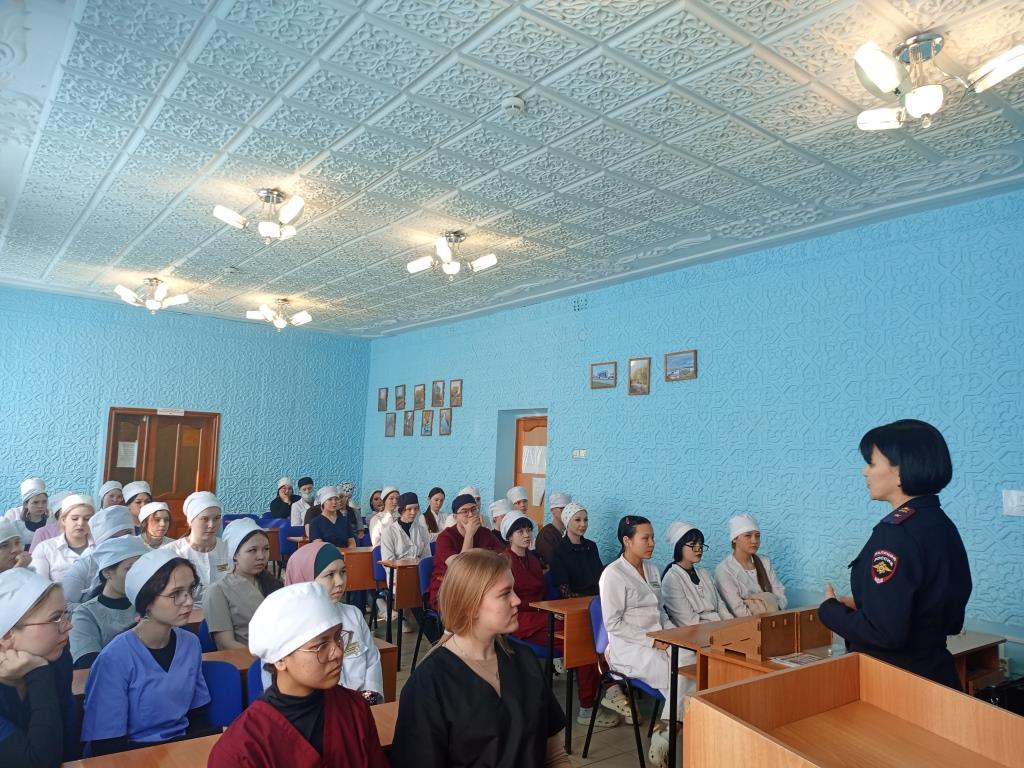 27 января состоялась встреча студентов выпускных групп ГАПОУ РБ «Стерлитамакский медицинский колледж» с заместителем командира отдельного батальона патрульно-постовой службы полиции УМВД Российской Федерации по городу Стерлитамак, майором полиции Николаевой И.В., где была затронута острая проблема современности - мошеннические схемы. Студентам напомнили о видах современного мошенничества, мерах предосторожности, позволяющих избежать попадания в ловушку злоумышленников, и правилах поведения, необходимых для защиты себя и близких. Также, Инна Васильевна рассказала, как сотрудники ППС обеспечивают правопорядок на территории города, патрулируют районы, задерживают правонарушителей.