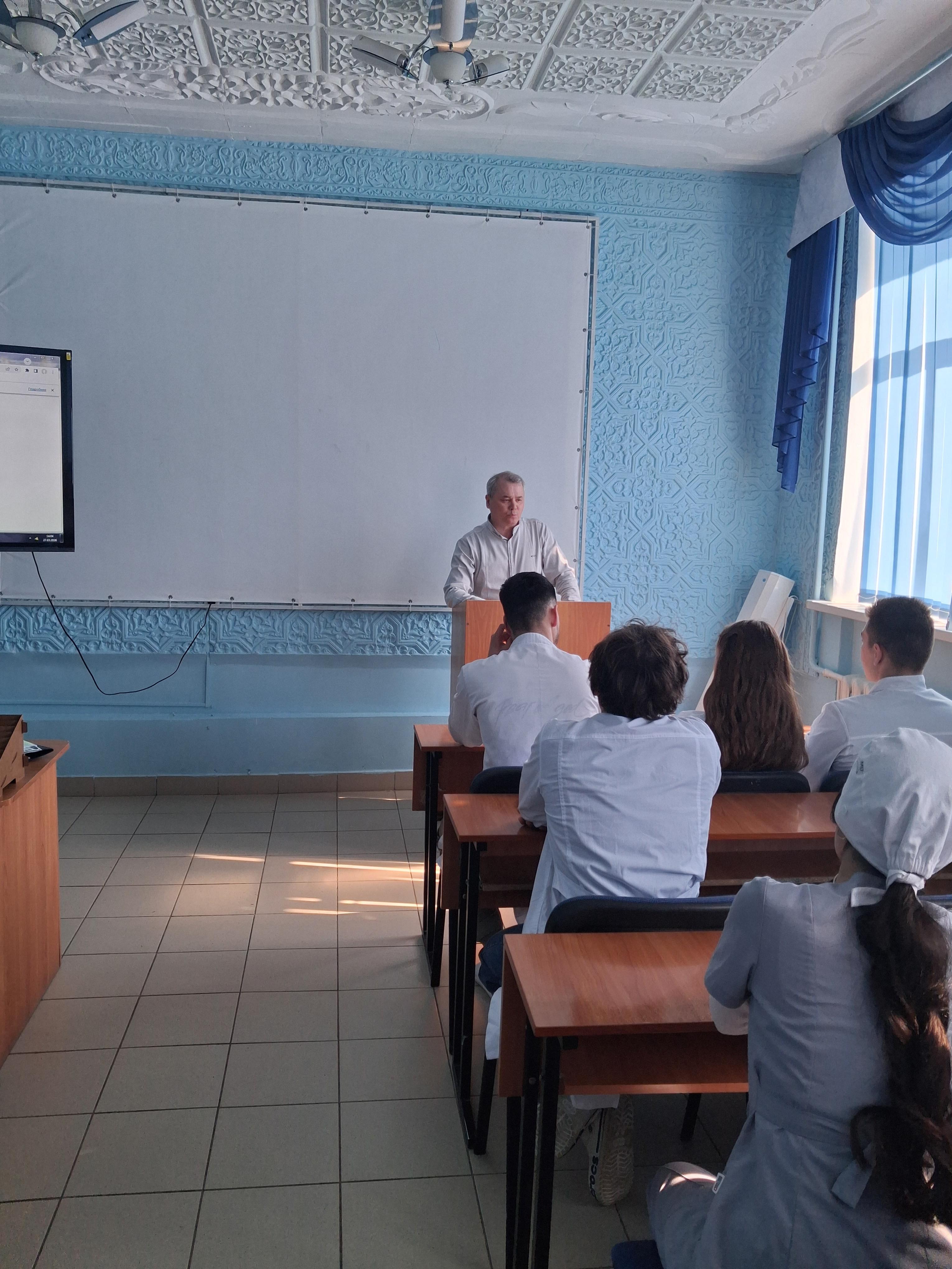 Сегодня состоялась встреча студентов выпускных групп с начальником отдела ППГ на ВС военкомата г. Стерлитамак Гатауллиным Д.Х. Встреча была организована с целью предоставления актуальной информации о возможностях поступления и обучения в Военно-медицинскую академию имени С.М. Кирова. Основные темы обсуждения: условия поступления в Военно-медицинскую академию; особенности образовательного процесса и специализации, перспективы трудоустройства и карьерного роста в вооруженных силах, возможности стажировки и практики в лучших медицинских учреждениях страны.