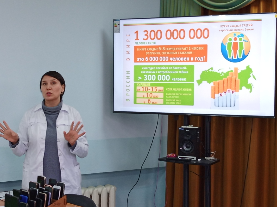 "Выбирай свободу, нет - зависимости!" Именно под таким девизом прошла встреча студентов нашего колледжа с медицинским психологом-наркологом Республиканского клинического наркологического диспансера Шарафутдиновой С. Ф. Светлана Фаритовна рассказала не только о проблеме потребления психоактивных веществ, табачной и алкогольной зависимостях, но и о механизме формирования этих зависимостей. Особое внимание в профилактической беседе было уделено пагубному влиянию на организм человека электронных сигарет, опасность которых для здоровья человека ничуть не меньше, чем табачных изделий. Также пояснила, почему вредны энергетические напитки и как они влияют на организм подростков.