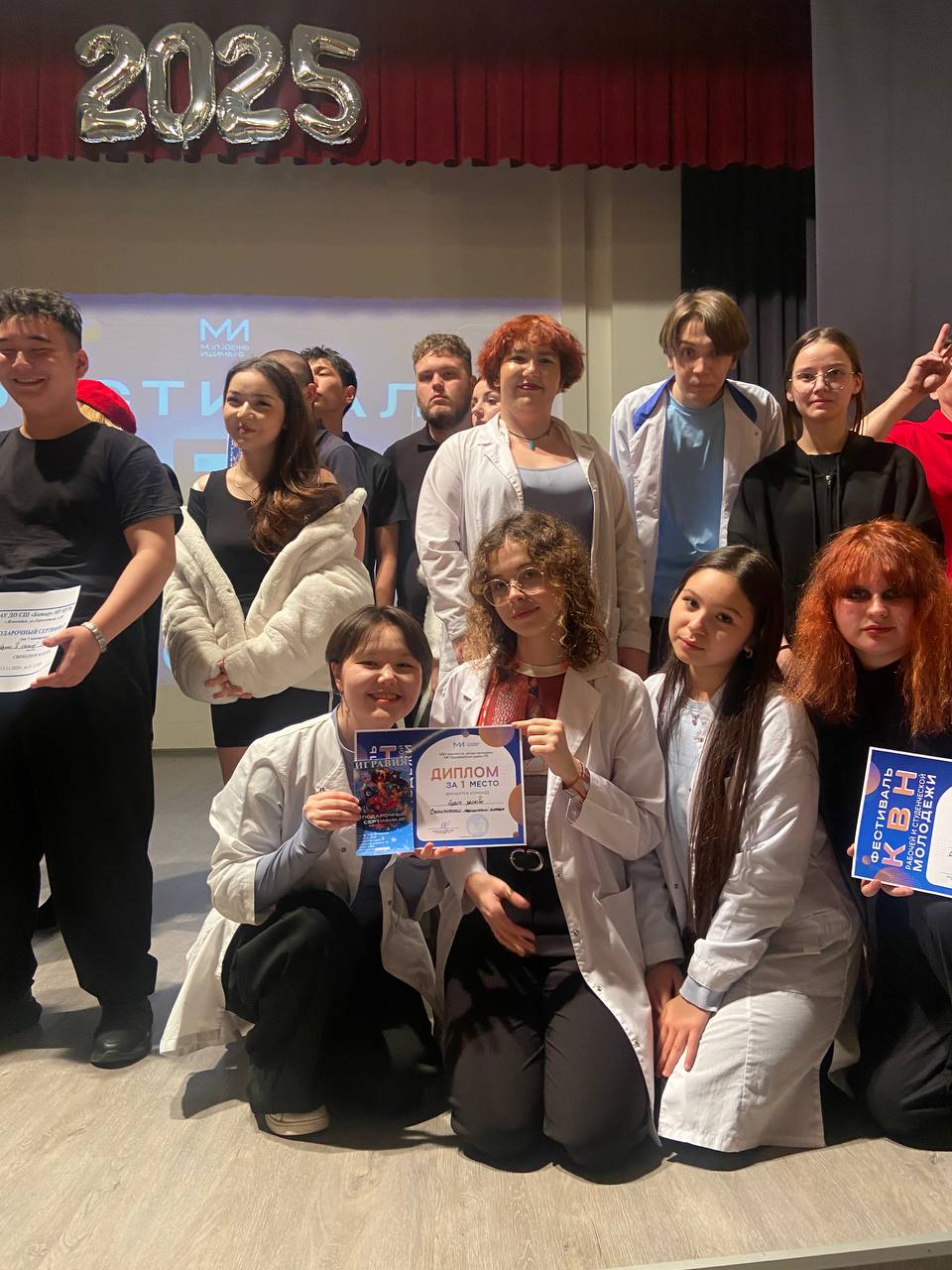 *13 ноября 2025 года* стал звёздным днём для *Стерлитамакского медицинского колледжа!* Наша непревзойдённая команда КВН «Будьте Здоровы»* в очередной раз доказала, что талант, юмор и интеллект - наши лучшие лекарства. Ребята блестяще выступили на фестивале КВН рабочей и студенческой молодёжи города Ишимбай и завоевали награду - *ПЕРВОЕ МЕСТО!*