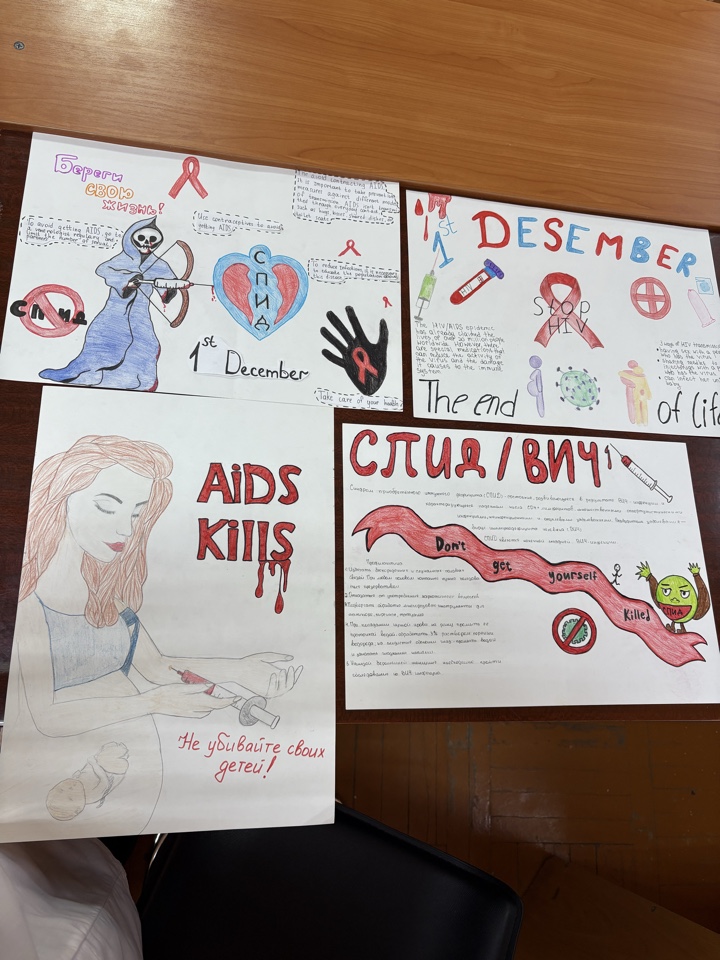 В рамках Всемирного Дня борьбы со СПИДом, который традиционно отмечается 1 декабря, группа 42 С провела акцию «СТОП ВИЧ/СПИД». Также преподаватели А.Ю. Байгулова, Ж.Е. Парамонова провели внеклассное мероприятие, посвященное профилактике СПИДа, на котором студенты представили творческие работы по тематике с использованием знаний английского языка. Цель мероприятия – напомнить о важности борьбы с распространением ВИЧ- инфекции, ценности здоровья и толерантности отношения к людям, живущим с этим диагнозом.